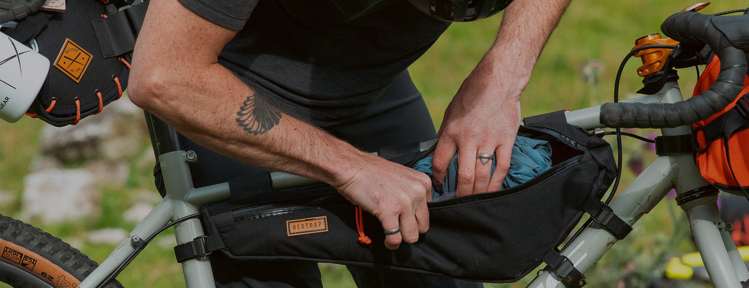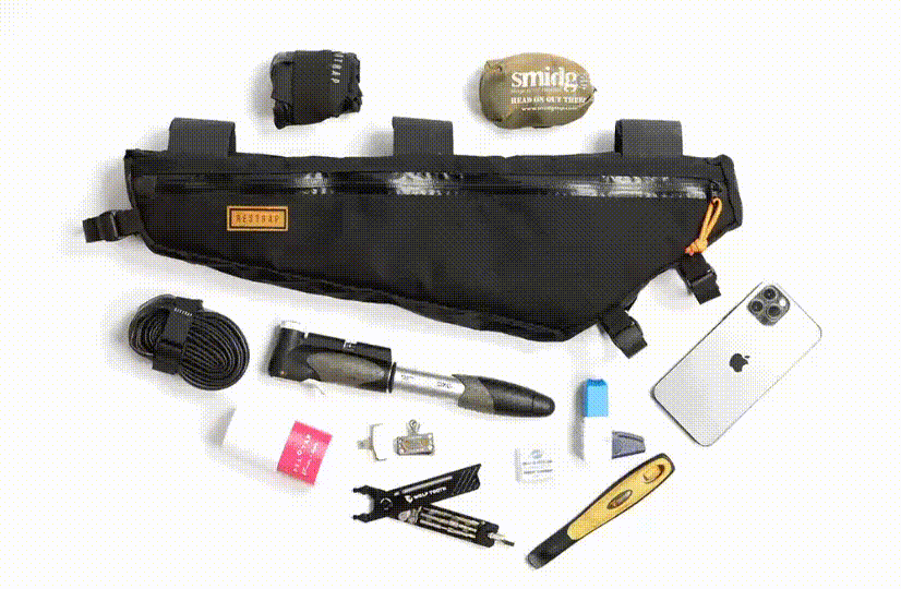 THE FRAME BAG IS A GREAT PIECE OF KIT OFTEN LEFT ON THE BIKE ALL YEAR ROUND, PERFECT FOR ALL THE ESSENTIAL TOOLS AND SPARES, A POWER-BANK, A PACKABLE MUSETTE, SNACKS, CAMERA, YOU NAME IT. THIS IS WHERE YOU WANT TO STORE ANYTHING THAT YOU REQUIRE EASY ACCESS TO WHILE ON THE BIKE.